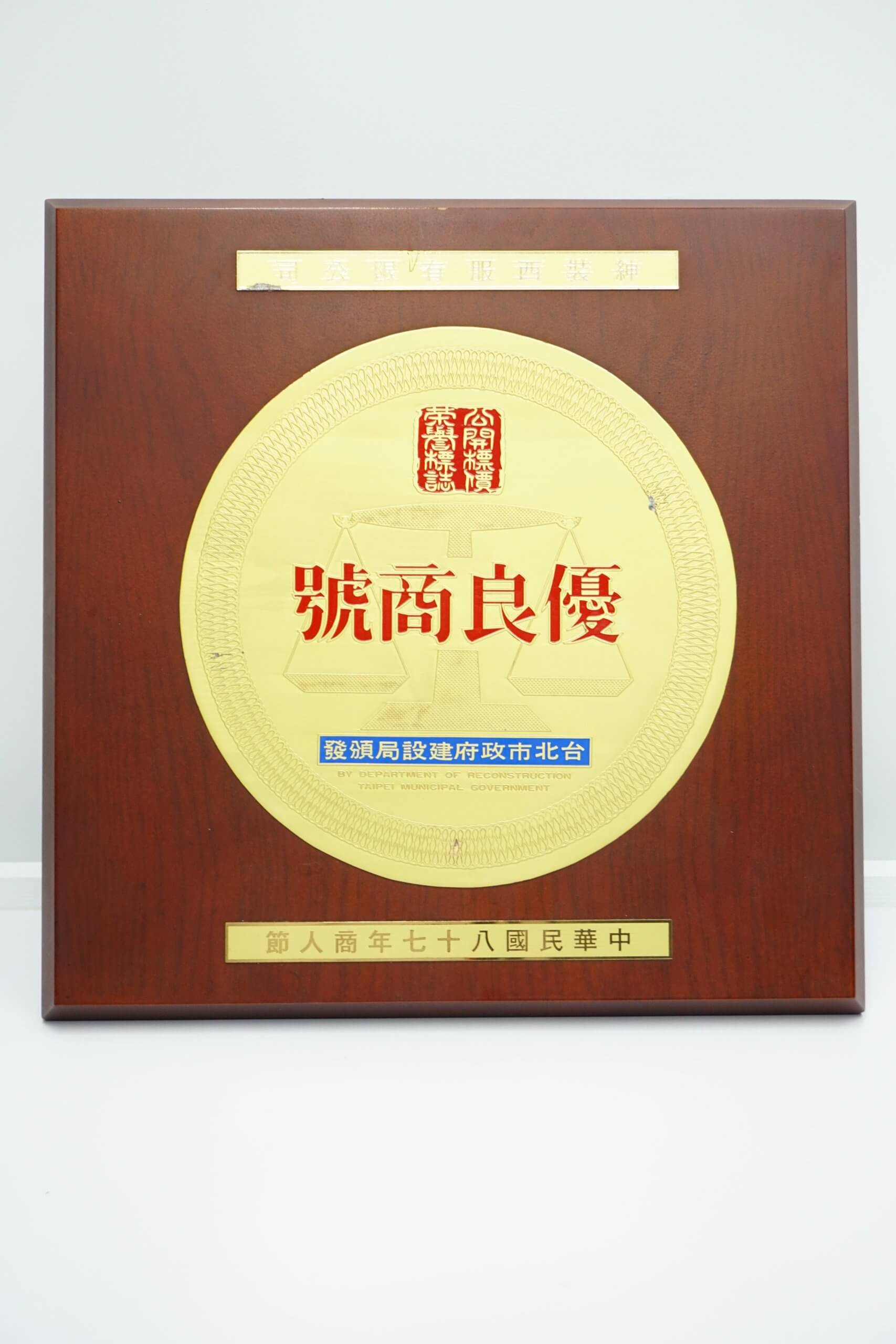首頁 金獎記事 紳裝西服獲頒台北市政府建設局優良商號